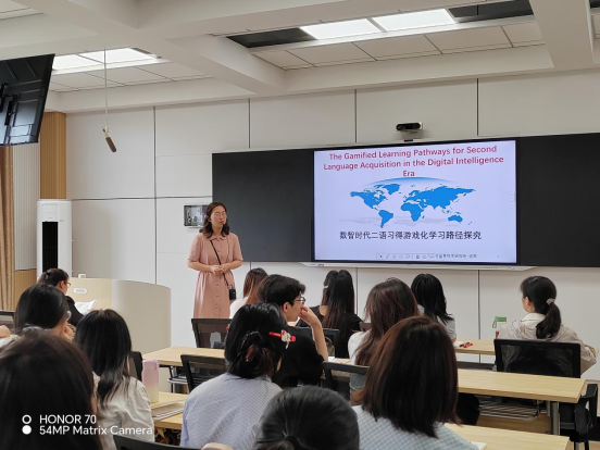 谈笑老师开篇明义,剖析了“数智时代”的核心特征——数字化(Digital)与智能化(Intelligent)的深度融合。在此背景下,二语习得游戏化学习绝非简单“包装”,而是以学习者为中心,融合“沉浸、智能、社交”三大核心要素的教育生态重构。她援引Krashen的“i+1”理论与情感过滤原则,强调游戏化设计需契合学习者认知水平并营造低焦虑环境;结合建构主义与社会文化理论,阐明知识在互动情境中主动构建、通过社交协作与脚手架支持得以发展的本质。