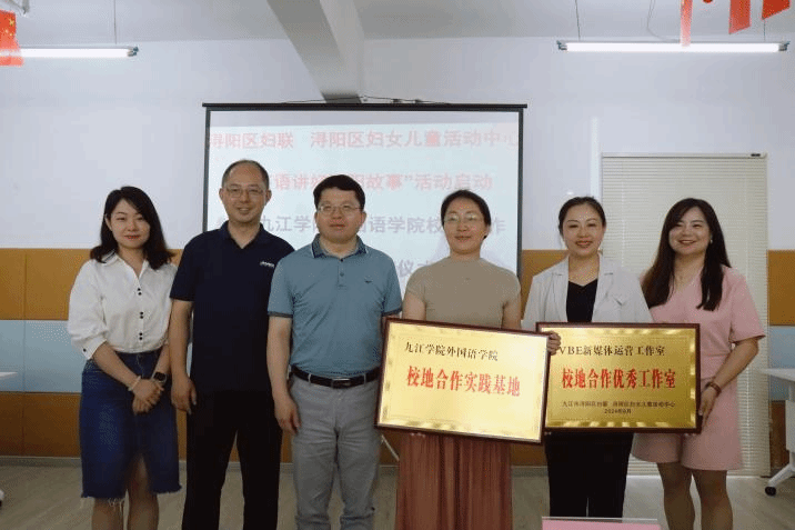 在启动仪式上,WilliamHill威廉希尔周志高院长发表了开幕致辞,介绍了九江深厚的历史文化底蕴,表达了对本次合作的肯定和支持,并与在场儿童代表亲切互动。浔阳区妇女儿童中心正式挂牌“WilliamHill威廉希尔校地合作实践基地”;商务英语VBE工作室由浔阳区妇联、浔阳区妇女儿童中心授牌“校地合作优秀工作室”。随后,在场观众一同观看了VBE工作室的往期视频,听取了妇女儿童中心对浔阳八景的初步介绍。