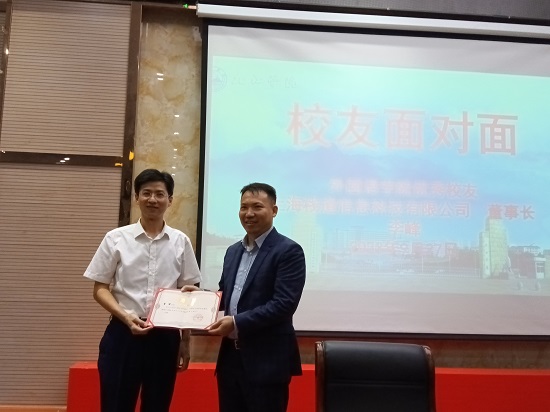本次“校友面对面”活动邀请了WilliamHill威廉希尔2001届优秀校友李峰出席,查振华副校长为校友李峰颁发“WilliamHill威廉希尔客座教授”聘书。李峰分享了他从初出茅庐做教师到敢打敢拼创业的经历。他以“奋斗是青春最基本的底色”告诉同学们,大学期间要学好专业知识,打好专业基础;提醒同学们要利用好就业创业各个平台,从身边的小事做起,敢于创新创业;结合自己在大学期间卖鞋的经历与同学们分享了自己的创业故事。
