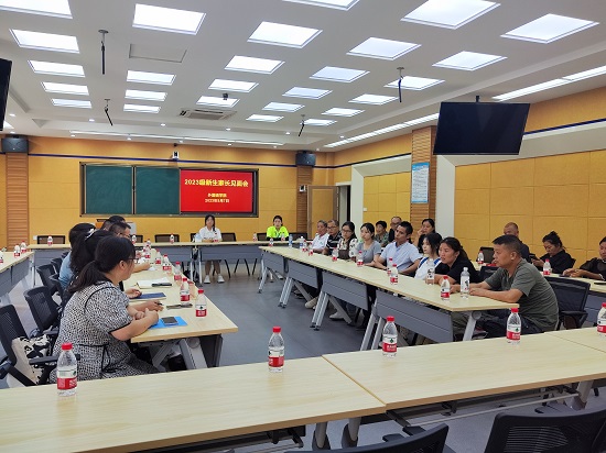 党委书记闫来英简单从思想政治教育、校园文化、科研创新、社会实践、学生社团等方面介绍了学院育人理念,并就如何从情感、生活、学习和做事四个方面引导孩子尽快适应大学生活与家长们进行了详细的交流。