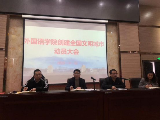 3月22日下午,我院在香远楼报告厅召开创建全国文明城市动员大会。院领导及全体教职工参加了会议,党委书记闫来英作了动员讲话,会议由副院长王伟主持。