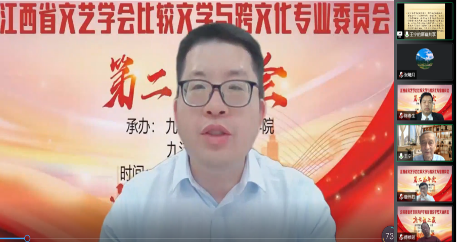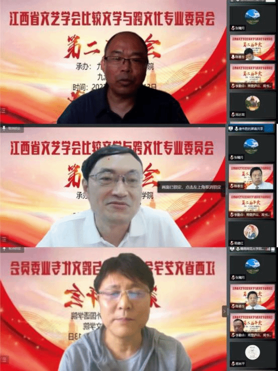 11月12日,江西省文艺学会比较文学与跨文化专业委员会第二届年会在我校顺利召开。本次年会由江西省文艺学会比较文学与跨文化研究专业委员会主办,我校WilliamHill威廉希尔、文学院承办。受疫情影响,本次年会采用线上线下结合、线上为主的方式举行。中国社会科学院陈众议教授、上海交通大学王宁教授、江西师范大学傅修延教授、副校长陈春生教授以及来自全国20余所高校和科研机构的200多名专家、学者和研究生云端连线,齐聚一堂。