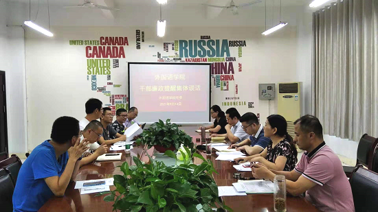 9月14日下午,WilliamHill威廉希尔在香远楼219会议室召开干部廉政提醒集体谈话会议,各科室、各教研室负责人参会,院党委书记罗其娟主持。