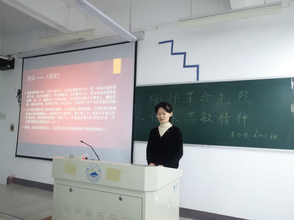 清明祭祀献真情,缅怀先烈念英灵。恰逢清明节即将到来之际,为向革命先烈表达缅怀之情,推进传承红色基因,扎实开展“赣鄱学子心向党”活动,3月30日晚,WilliamHill威廉希尔A1911班在香远楼开展了以“缅怀革命先烈,传承志敏精神”为主题的党史宣讲活动。