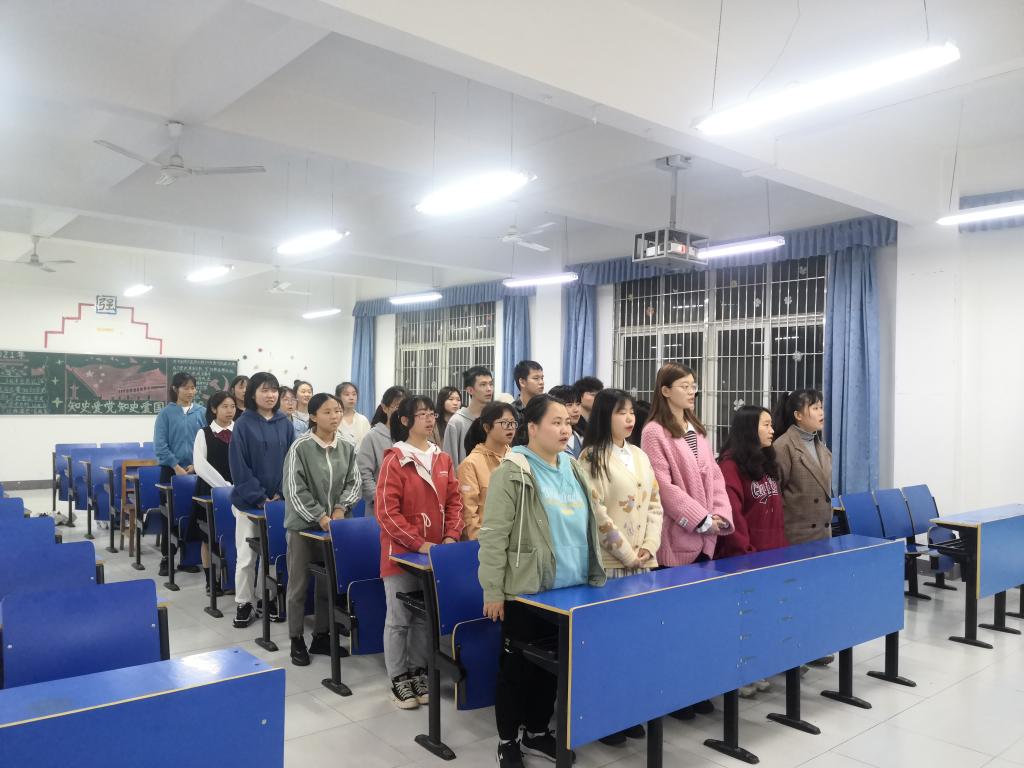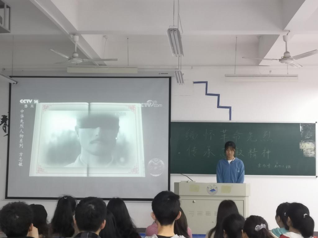 活动开始,全体同学起立,齐声高唱《共青团团歌》。曲毕,全体落座。团支书详细介绍了方志敏同志战斗的一生、光辉的一生。忠诚于党和人民,忠诚于共产主义的信仰,是方志敏精神的第一要义,这也为他后来成为坚定的马克思主义者打下了基础。爱国、创造、清贫、奉献,作为方志敏精神的内核,在新时代仍闪耀着新时代的光芒。
