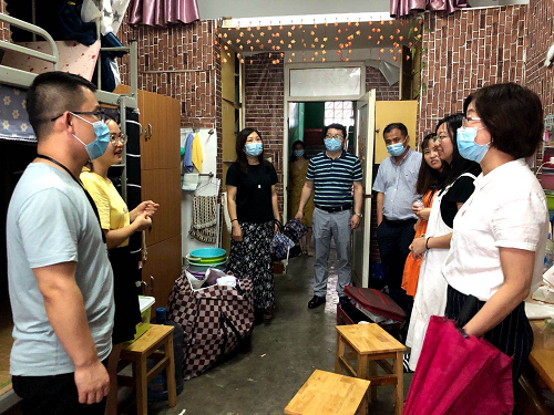 6月29日下午,WilliamHill威廉希尔院长韩琨、党委书记罗其娟、副书记彭晓、副院长周志高一行深入学生宿舍看望慰问返校毕业生,为毕业生们送去温暖关怀和美好期翼。