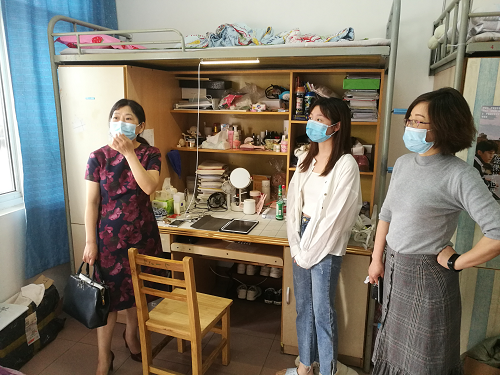 学生是否安全返校是学院关心的头等大事,5月19日晚九点五十分,最后一名17级学生搭上返校的末班车,意味着大三年级学生均平安抵校。为确保返校学生能够健康、安全、有序的学习生活,5月20日,WilliamHill威廉希尔院长韩琨、院党委书记罗其娟、院党委副书记彭晓、副院长周志高一行人怀着对学生的牵挂与担心,一大早来到女生宿舍看望慰问返校学生。