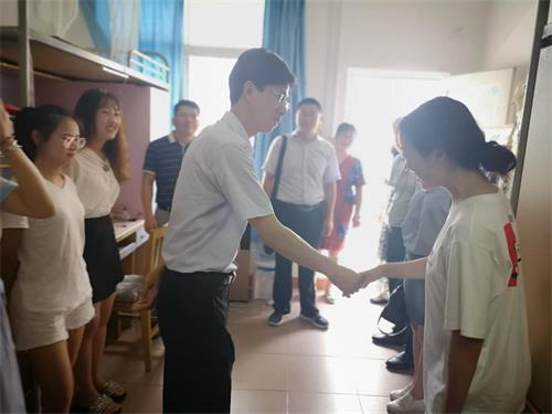 每到一间宿舍,查副校长都要亲切询问同学们学业、生活、工作等各方面的情况,希望同学们牢记“竞知向学、厚德笃行”的校训和“外显精气神、语藏锦绣文”的院训,牢记母校嘱托,怀揣着梦想,瞄准人生方向,奋进在新时代的大路上。他还鼓励同学们将满腔的青春热血撒到祖国最需要的地方。当得知B1631班两位同学已经顺利考上国编,查副校长对她们表示衷心的祝贺,并再三叮嘱她们一定要努力做个好老师,学习孔子“有教无类”的教育思想,给予学生无私的爱。