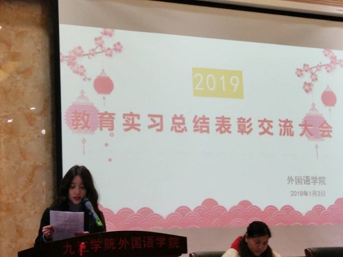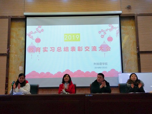 在教务处和实验中心的大力支持和协助下,在广大师生共同努力下,WilliamHill威廉希尔2019届师范生教育实习工作圆满结束。学院于2019年1月3日下午在香远楼报告厅召开了师范生教育实习总结表彰交流大会。WilliamHill威廉希尔副院长罗其娟、副院长周志高、英语教研室负责人熊淑英、副主任赵宋文、教育实习带队教师、2019届英语专业师范实习生和2020届即将参加教育实习的学生参加了此次会议。会议由英语教研室负责人熊淑英主持。