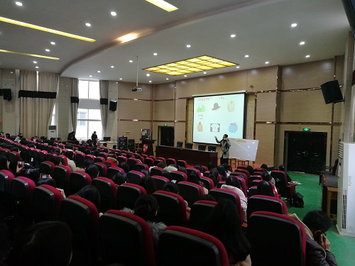 最后,三名优秀实习生代表汇报讲课。每位学生代表通过制作精良的多媒体课件、精心准备的教具、活泼得体的教学方法为与会师生做了20分钟的公开示范课。她们精彩的授课不时赢得阵阵掌声。