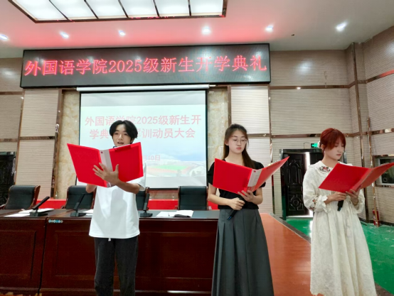 学院诵读社带来了中外文朗诵《逐梦新征程,青春正当时》,为新同学们打开了一扇通往语言世界的大门。