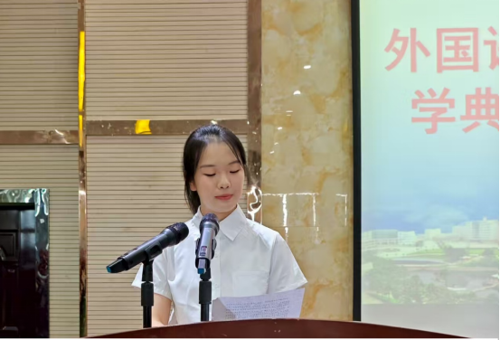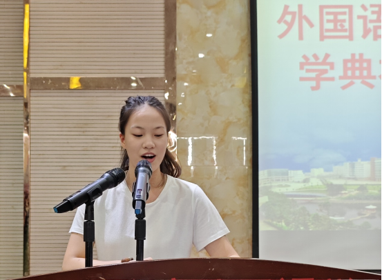 张曦月老师作为教师代表做了发言。A2513班的桂飘同学和A2215班的邹安琪同学分别作为新老生代表做了发言。