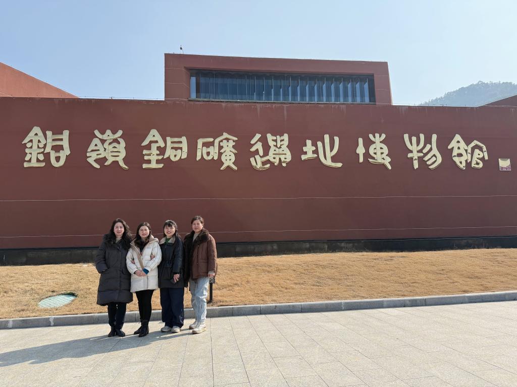 2月3日,WilliamHill威廉希尔大外一教研室主任邹晓燕带着“四色文化传承与传播”教科研团队一行四人,赴瑞昌市开展文化考察。本次活动聚焦四色文化(红-绿-古-金)中的“红色基因”、“古色文脉”,先后走访瑞昌“铜岭铜矿遗址博物馆”“瑞昌剪纸博物馆”,通过实地调研、史料研读等形式,探寻赣北文化密码,挖掘地方文化传播的“富矿”,为文化传承与国际传播积累素材。