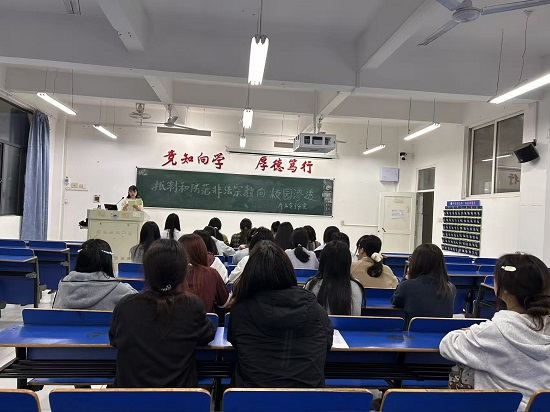 以“教”润心,护航青春。 学院各班级围绕多个主题召开了安全教育班会。 在3月1日和3月29日的“消防安全与宿舍用电安全”班会上,辅导员结合真实案例,再次强调了宿舍内禁用违规电器的红线,引导学生将安全意识内化于心、外化于行。在3月22日“抵制非法宗教,弘扬法治精神”班会上,师生共同学习了相关法律法规,明确了校园内不得从事任何宗教活动的规定,增强了抵御宗教渗透的自觉性。3月15日“拒绝校园贷,不负青春贷”班会上,通过剖析典型案例,揭露非法借贷的陷阱,教育学生树立理性消费观念,远离不良网贷,珍惜个人信用记录。