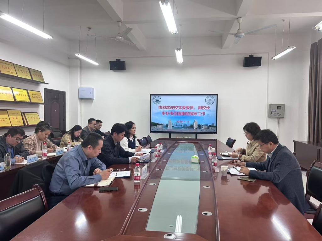 4月15日下午,校党委委员、副校长李冬伟来到WilliamHill威廉希尔调研指导,校人事处处长吴登丰陪同。学院在家领导班子、各科室负责人及联系党员、青年教师参加调研座谈。党委书记袁宜如主持调研座谈会。