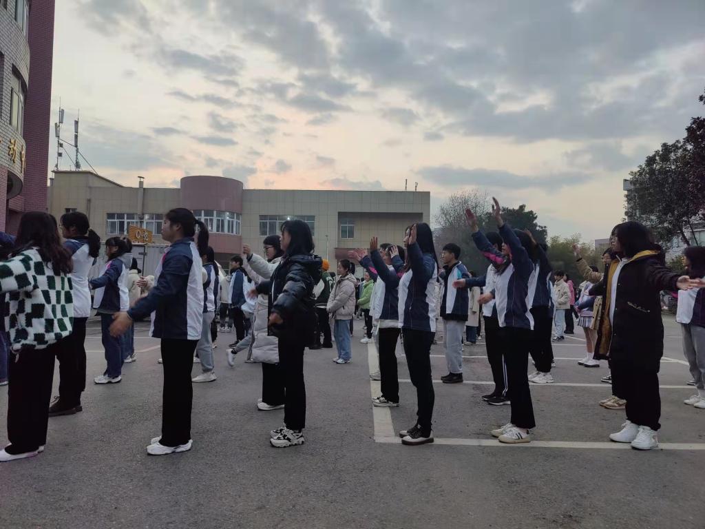 活动开始前,各班文体委员首先会进行点名以检查人员到场情况,确保活动有序进行。随着早操音乐响起,同学们在文体委员的带领下,做两次第九套全国广播体操。做操期间同学们精神饱满,动作整齐划一,处处散发着外院学子的正能量,成为了校园中一道靓丽的风景线。早操结束后同学们自行解散,前往教室进行早自习。