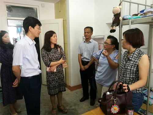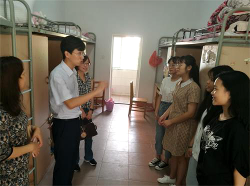9月4日上午,副校长查振华在WilliamHill威廉希尔院长韩琨、党委书记罗其娟、副书记彭晓等同志的陪同下深入WilliamHill威廉希尔学生宿舍看望新生。