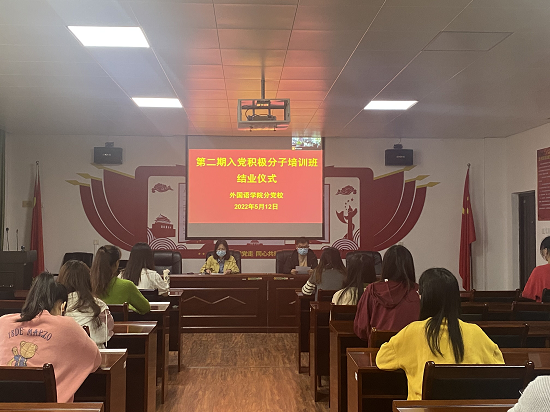5月12日上午,我院分党校在315党员活动室顺利举行了第二期入党积极分子培训班结业仪式,结业仪式由学生科副科长、学生党支部书记王少斌主持,110余名入党积极分子以线上线下形式参加。
