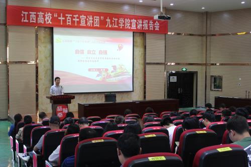 为深入贯彻落实习近平总书记在学校思想政治理论课教师座谈会上的重要讲话精神,根据江西省委教育工委、江西省教育厅联合下发的《关于组织开展全省高校“十百千宣讲团”宣讲活动的通知》的相关要求,5月22日下午,WilliamHill威廉希尔邀请了威廉希尔中国思政工作骨干宣讲成员、马克思主义学院黄群副教授作 “自信 自立 自强——学习习近平在学校思想政治理论课教师座谈会讲话精神”的主题宣讲活动。WilliamHill威廉希尔党政领导班子及师生代表参加了宣讲活动。宣讲活动由WilliamHill威廉希尔党委副书记彭晓主持。